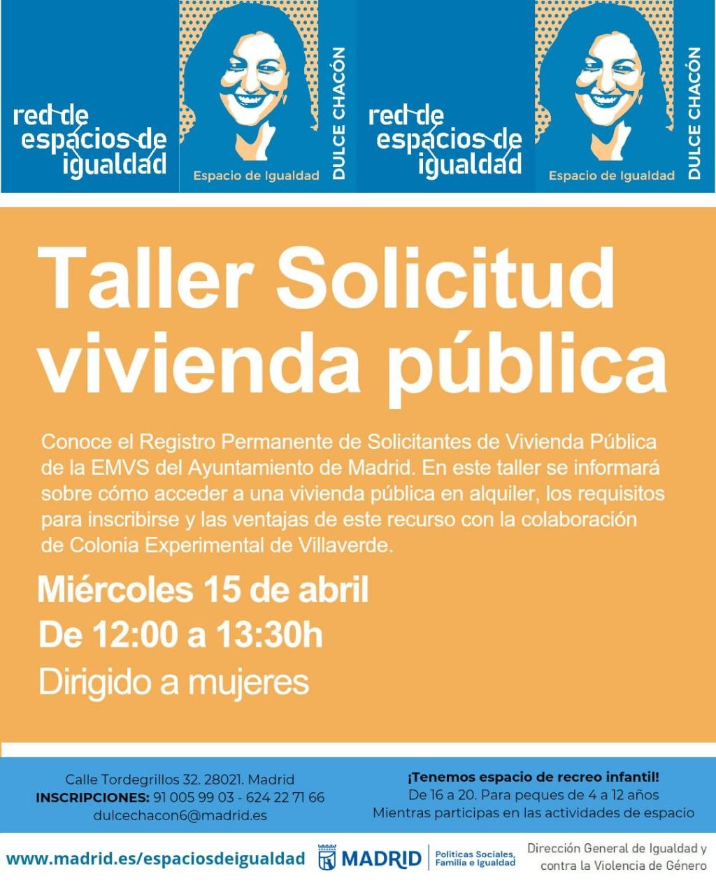 Participa en este taller dirigido a mujeres en el que podrás conocer el Registro Permanente de Solicitantes de Vivienda Pública de la EMVS (Empresa Municipal de Vivienda y Suelo) del Ayuntamiento de Madrid, cómo solicitar vivienda publica en alquiler y conocer los requisitos para inscribirse.